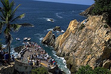 as the cliff divers of La Quebrada dive from dizzying heights into a narrow cove.
