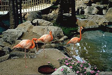open-air lobby, and gorgeous grounds where flamingoes, swans, and